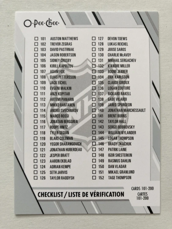 2023-24 O-Pee-Chee #200 CHECKLIST 101-200
