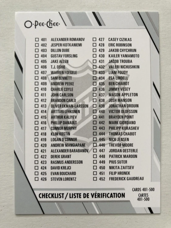 2023-24 O-Pee-Chee #500 CHECKLIST 401-500Skladom 1 ks0,25 €/ ks