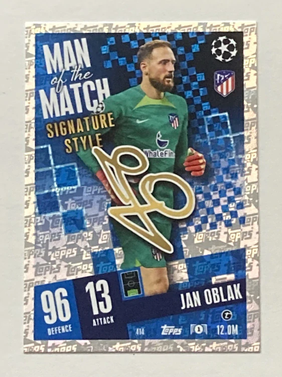 2023/24 Topps Match Attax #414 Jan Oblak - MAN OF THE MATCH [Atlético de Madrid]Skladom 3 ks1,35 €/ ks