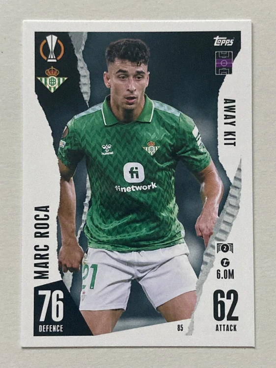2023/24 Topps Match Attax Extra #085 Marc Roca - AWAY KIT [Real Betis Balompié]Skladom 2 ks0,35 €/ ks